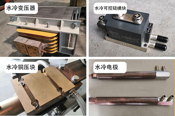采用整機(jī)水冷設(shè)計(jì),水冷變壓器,水冷可控硅,水冷銅壓塊,水冷電極,有效緩解焊接發(fā)熱。